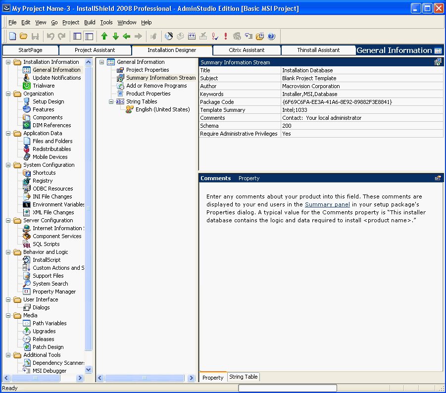 - Create a new Basic MSI Project in the InstallShield Editor.