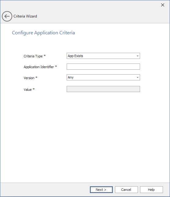 Criteria TypeSelect one of the following Criteria Type: App Exists App does not exist