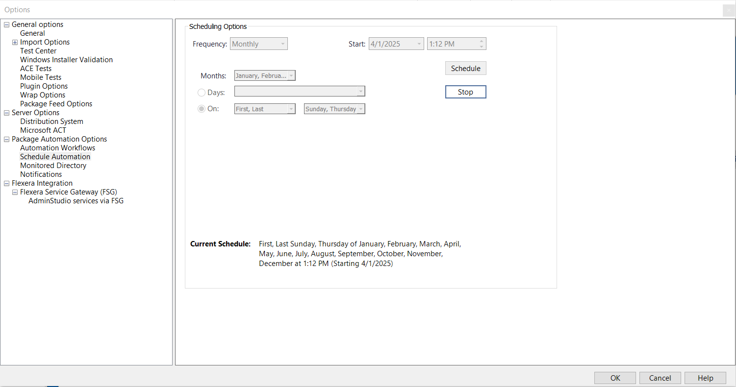 - Under  Package Automation Options , select  Schedule Automation . The  Scheduling Options  tab opens.