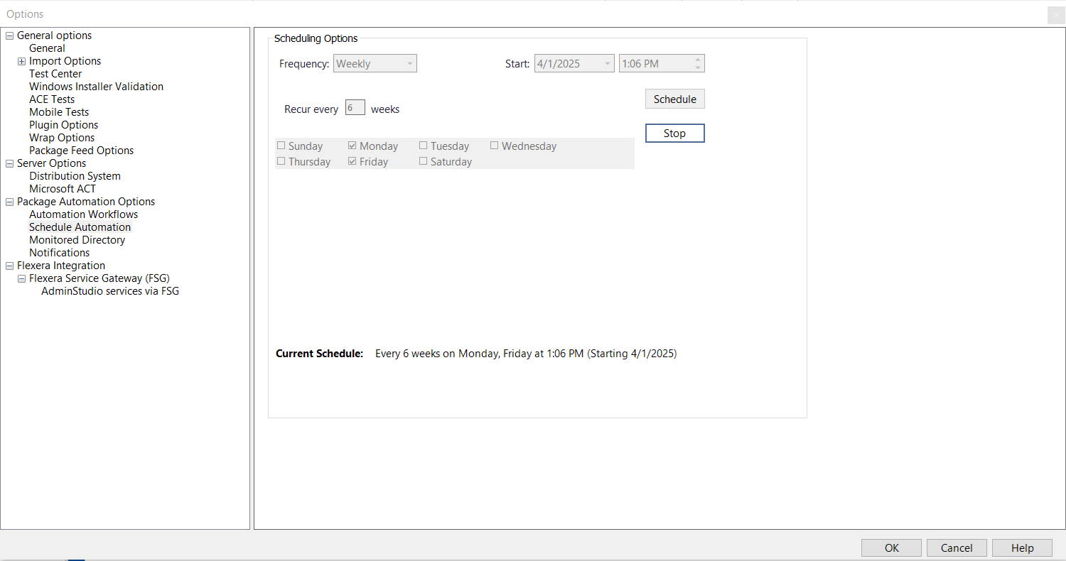 - Under  Package Automation Options , select  Schedule Automation . The  Scheduling Options  tab opens.