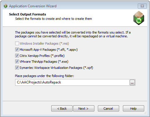- Any Platform—The Automated Application Converter will use any of the virtual machines that you have selected on the Machines tab to perform automated repackaging, regardless of platform.