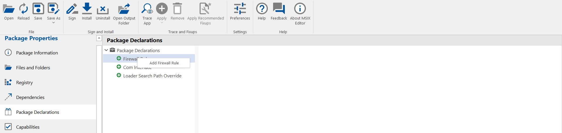 - In the Package Declarations pane, right-click on any declaration where you want to add properties, and then click on Add Rule as appropriate.